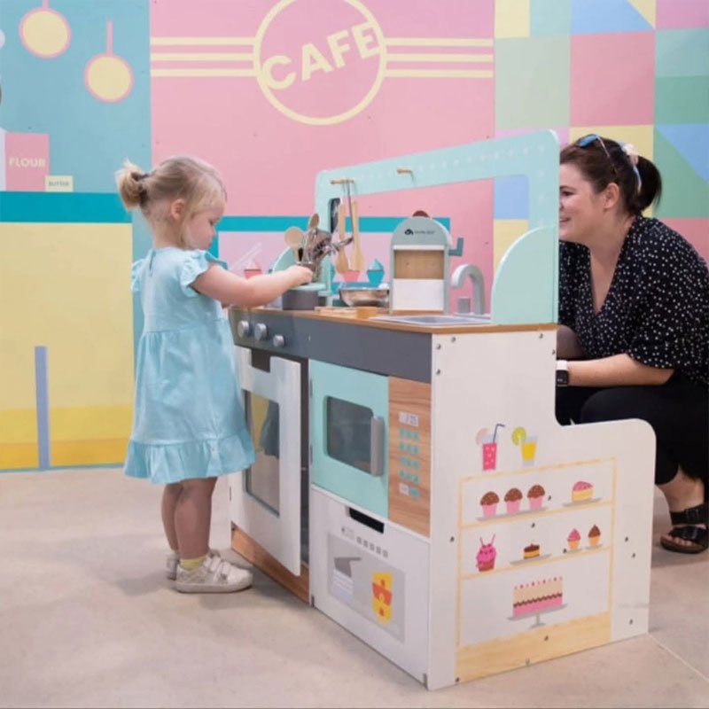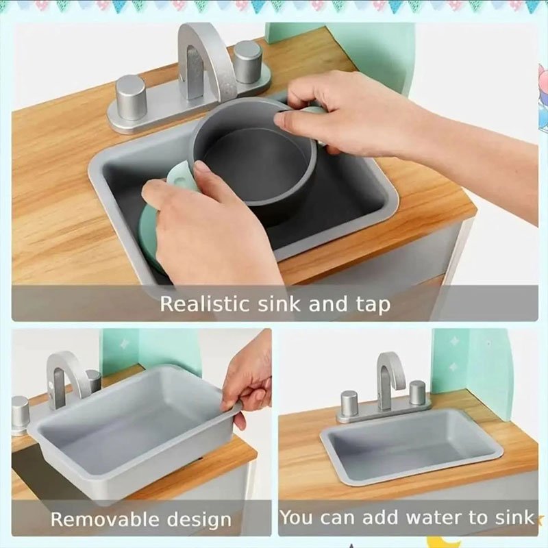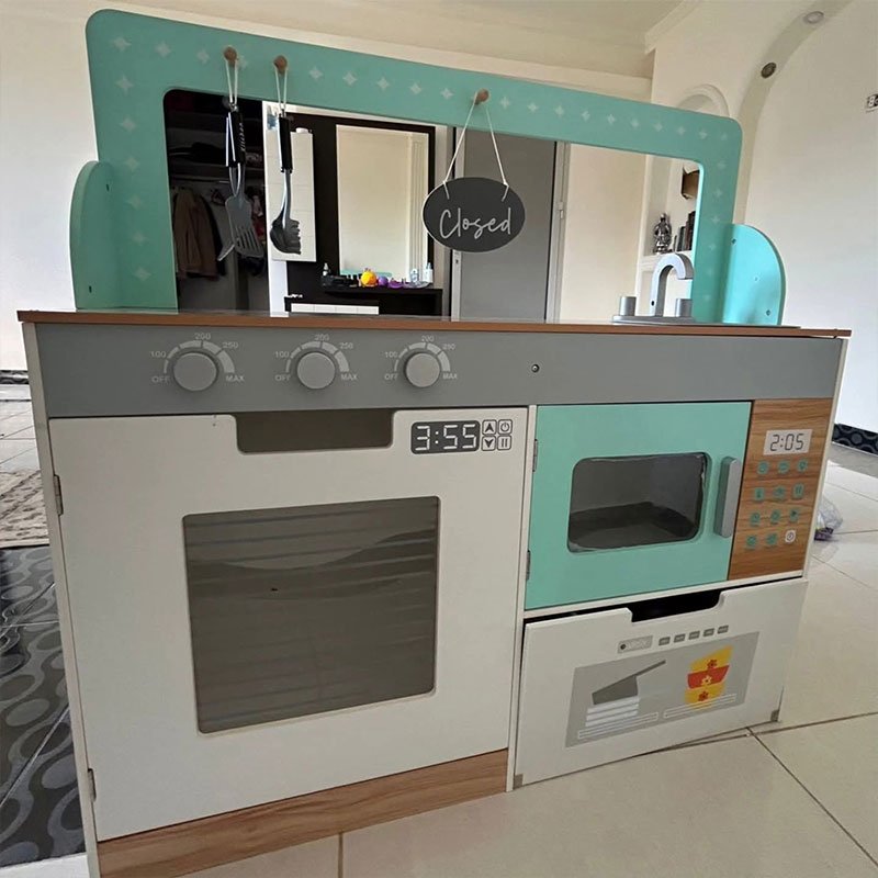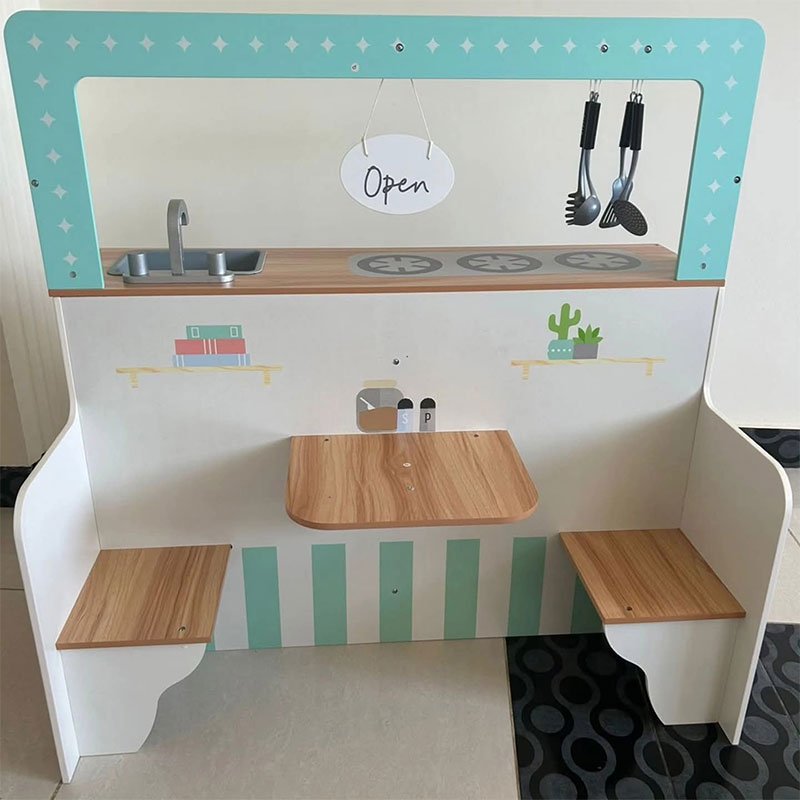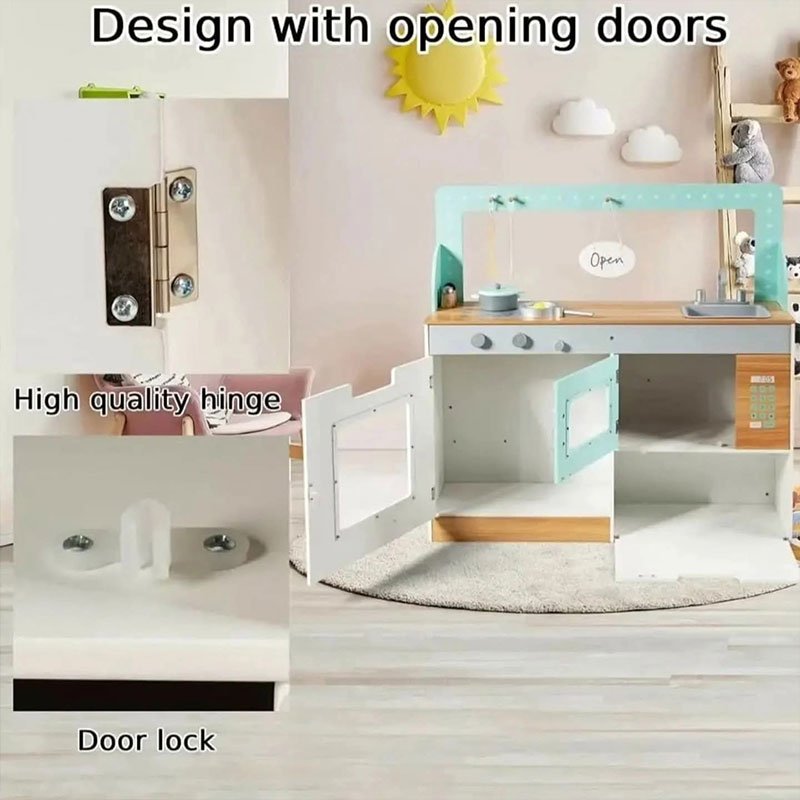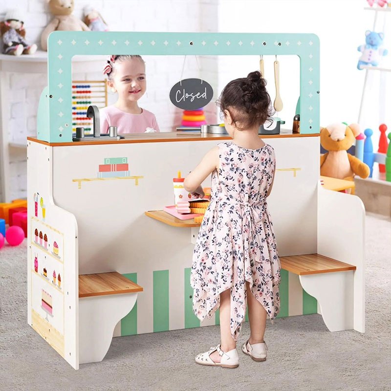 Made from durable, child-safe materials, this pretend play kitchen and restaurant helps develop fine motor skills, communication, and role-playing abilities — the perfect all-in-one play experience for young kids.