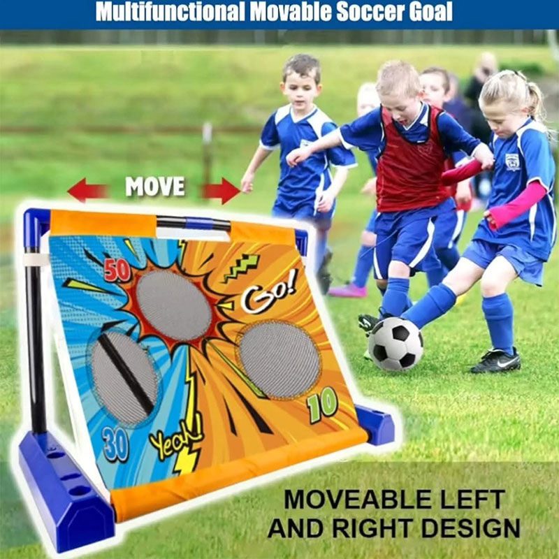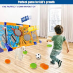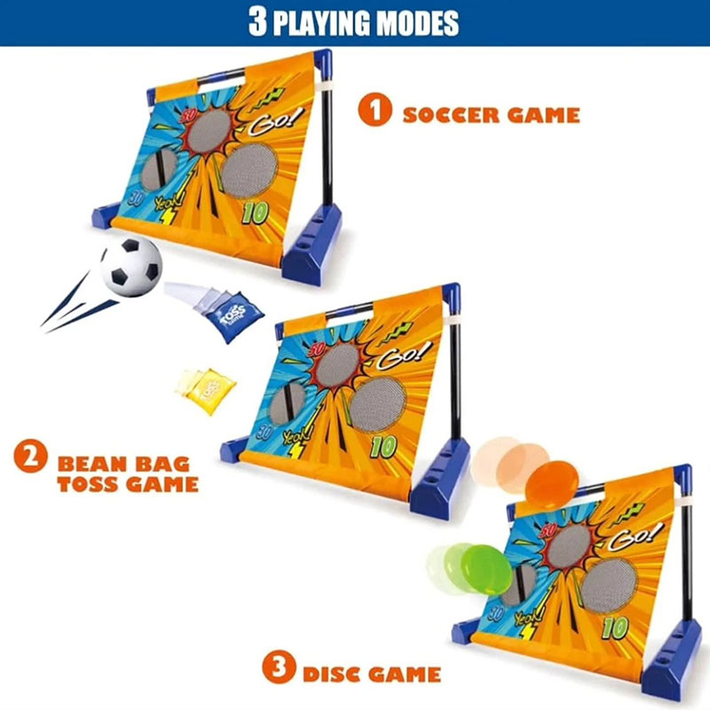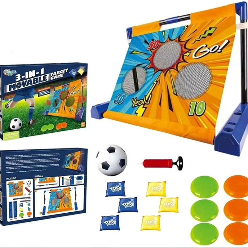 This 3-in-1 movable target game set combines a soccer goal, bean bag toss, and sticky ball dart game. It includes a foldable target board with point values, a mini soccer ball, pump, bean bags, and sticky balls or frisbees. Perfect for kids’ indoor and outdoor play, promoting fun, coordination, and active learning.