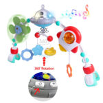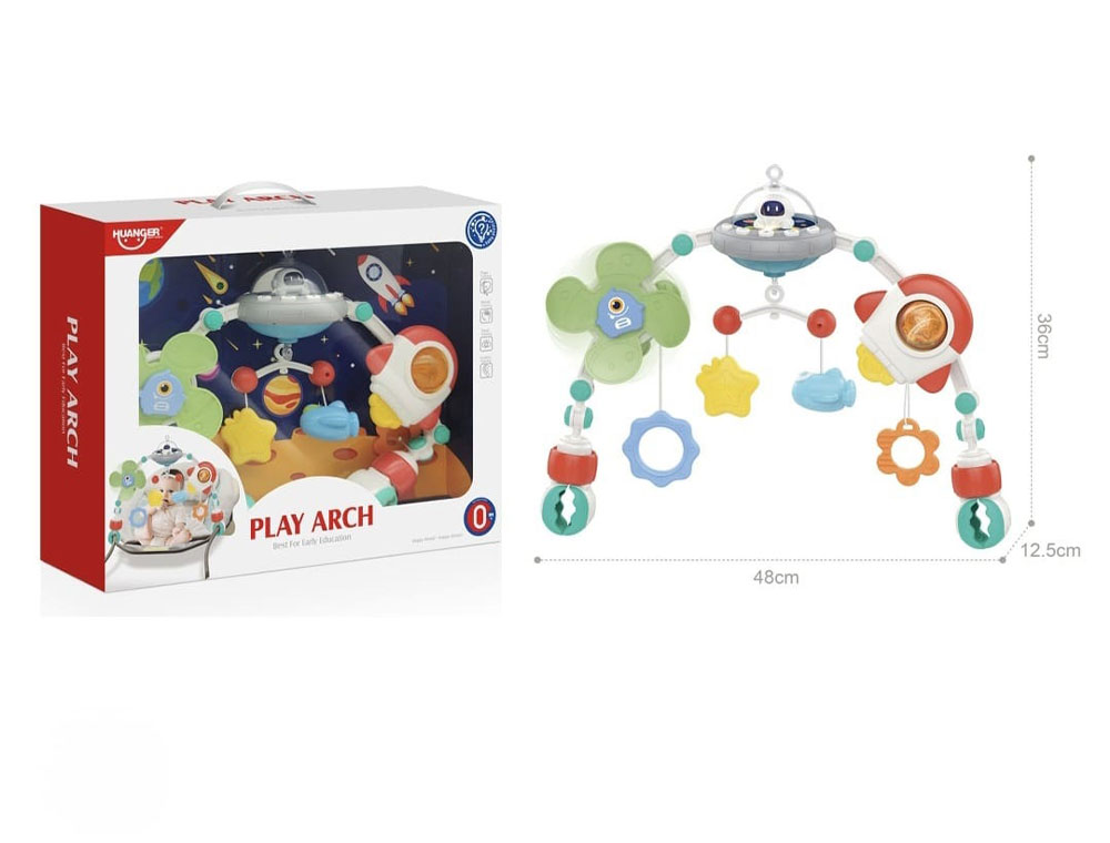 The Huanger Baby Play Arch is a space-themed toy designed to attach to cribs, strollers, or car seats. Featuring adorable UFO, rocket, and star designs, it includes interactive elements such as a motorized music box, spinning windmill, and teether. Suitable for newborns (0+ months), it provides engaging sensory play at home or on the go.