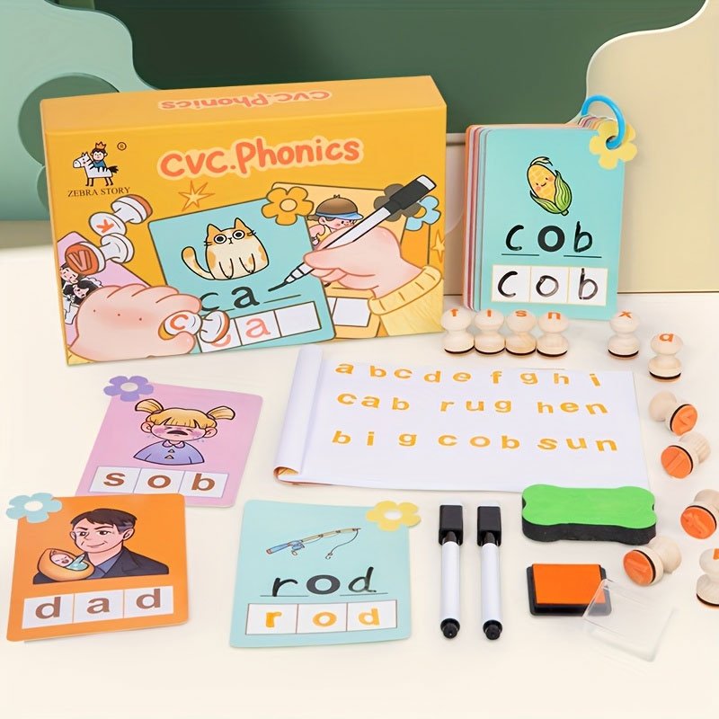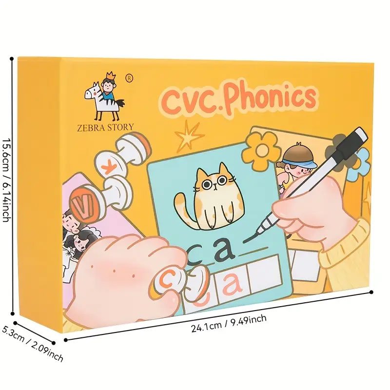 Help your child build early reading skills with the “CVC Phonics” workbook. Designed for young learners, it focuses on CVC (Consonant-Vowel-Consonant) words to teach phonics, letter blending, and word recognition. Fun, illustrated pages like the cat example make learning to read engaging and hands-on for children.