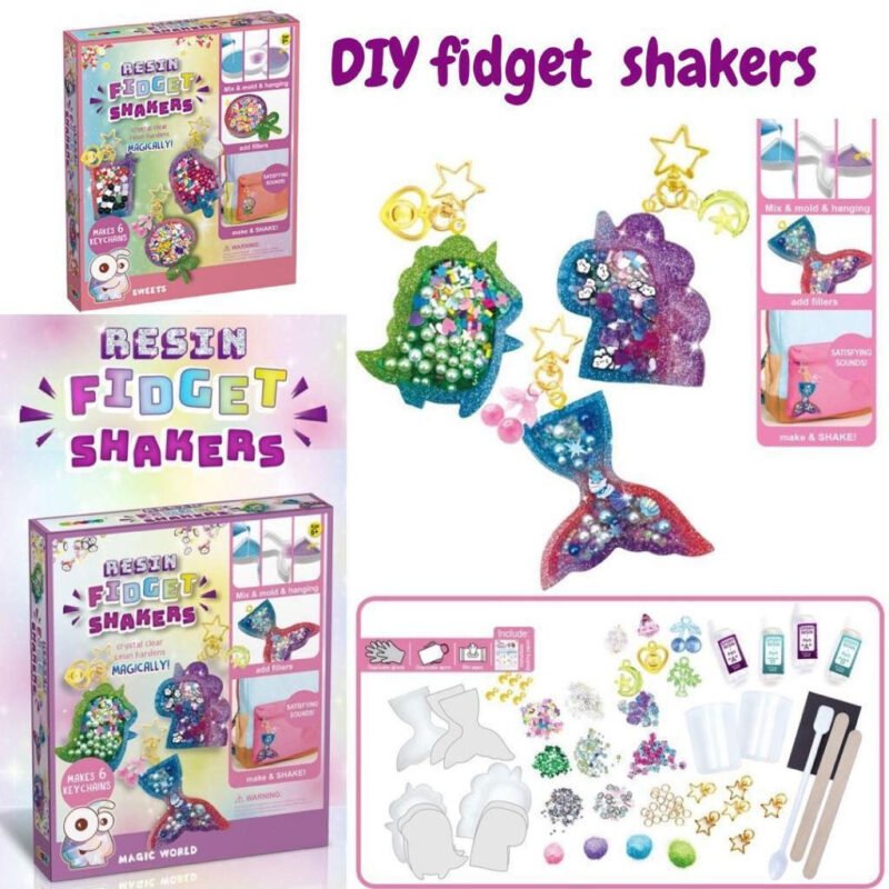 Make your own magical keychains with the ‘Magic World’ Resin Fidget Shakers DIY Kit! Includes resin, glitter, and beads to create six fantasy-shaped shakers like unicorns and mermaid tails. Fun, tactile craft