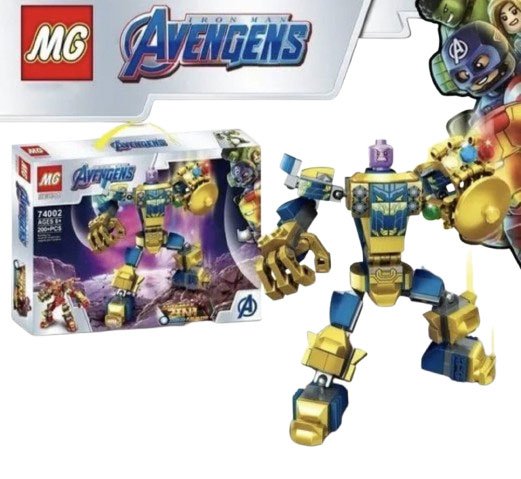 MG Avengers Thanos Mech Building Block Set – Bring the power of the Mad Titan to life with this exciting Thanos Mech building block set! Featuring 218 pieces, this buildable robot includes a detailed breastplate and the iconic Infinity Gauntlet with all 6 Infinity Stones. The mech’s movable arms and legs let kids pose it for epic battles and creative play. This set offers superhero fun and imaginative building action.