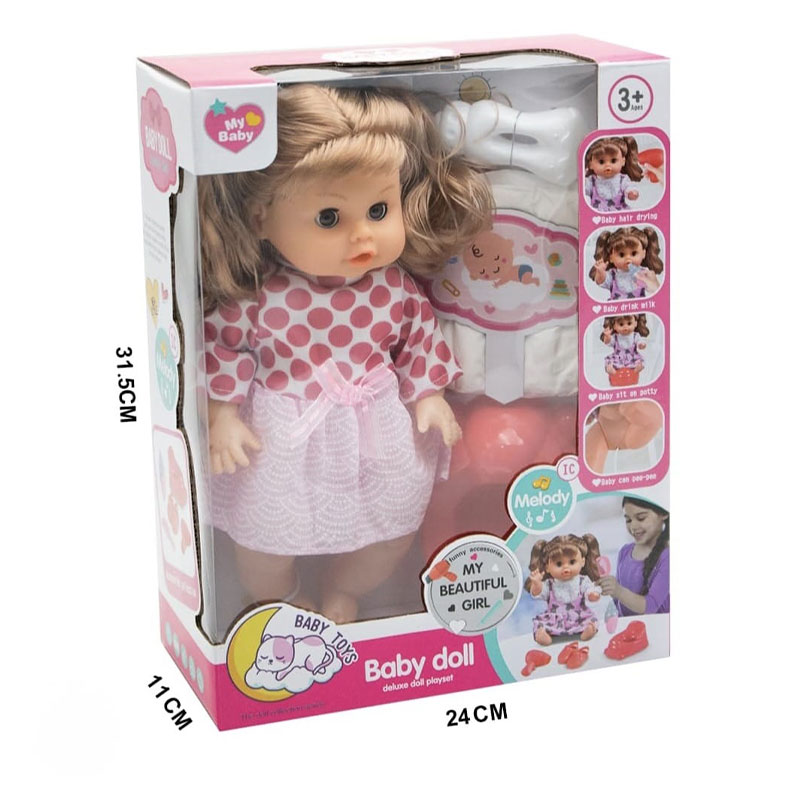 The Melody My Beautiful Girl baby doll playset is the perfect companion for little ones aged 3 and up. This playset includes a charming baby doll along with a variety of fun accessories, offering endless opportunities for imaginative play. With dimensions of 31.5 cm x 24 cm x 11 cm, it’s the ideal size for young hands to hold and care for. Whether for nurturing or storytelling, this doll set encourages creativity and role-playing.
