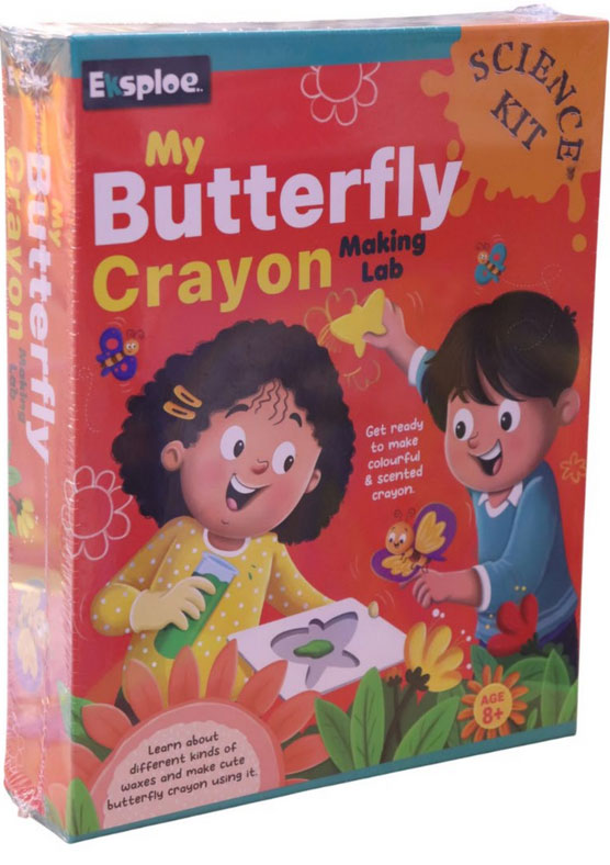 My Butterfly Crayon Making Lab – DIY science kit for kids 8+. Create 4 scented butterfly-shaped crayons while learning about waxes. Encourages STEM learning, creativity, and sensory exploration. Perfect for hands-on, educational fun!