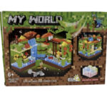 My World: City of Light and Forest Cave. A Minecraft-inspired building block set with 220 pieces. Kids can create their own adventure world featuring a lamp holder and colorful lights for a glowing effect.