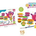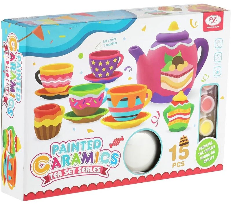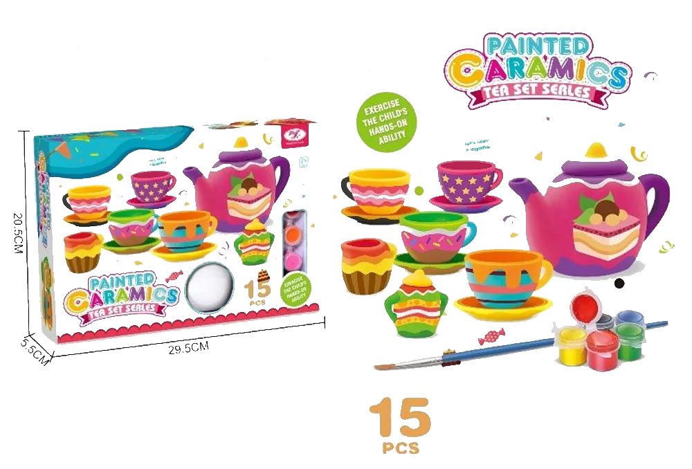 A charming 15-piece hand-painted porcelain tea set perfect for kids’ pretend tea parties, creative play, and adorable room décor.