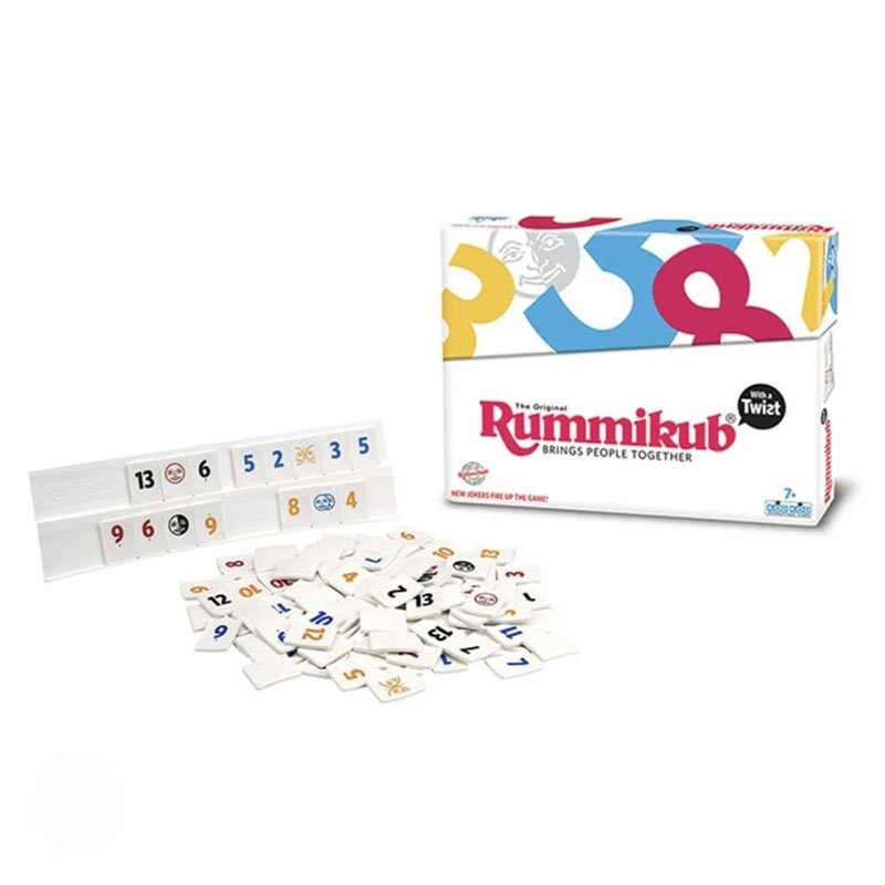 Rummikub Twist is a fun twist on the classic Rummikub game, featuring three new types of joker tiles for added excitement. Designed for 2–4 players aged 7 and up, the set includes 112 mini tiles, 4 mini racks, and easy-to-follow instructions perfect for game nights and family fun!