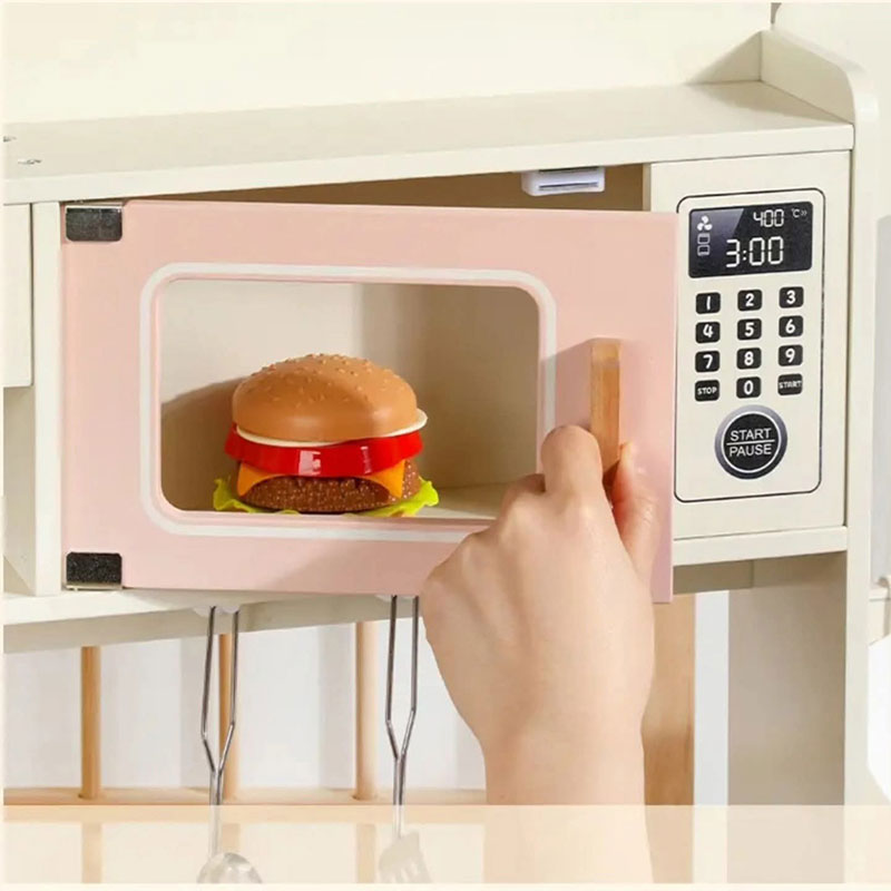 Encourage creativity and role play with this children’s wooden play kitchen set. Designed as a realistic simulation playhouse, it features multiple play areas including a sink, stove, microwave, and laundry zone. Made from sturdy wood, the set includes interactive knobs and fun accessories, offering endless opportunities for imaginative, hands-on play.