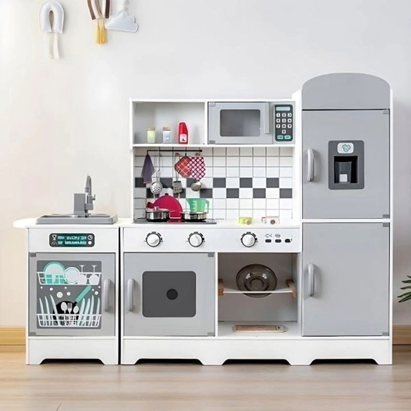 Inspire creative play with the Little Angel Kids Wooden Kitchen Playset — a delightful pretend play kitchen designed for children aged 3 and up. Made from durable wood or MDF, it includes a refrigerator, oven, microwave, sink, and a variety of utensils and pots. Perfect for encouraging imagination, creativity, and motor skill development during playtime.