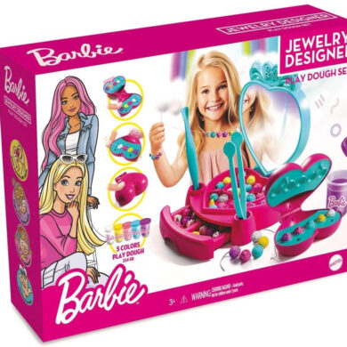 Create vibrant, custom jewelry with the Barbie Jewelry Designer Play Dough Set. Perfect for kids 3+, this creative kit includes 5 colorful, non-toxic play doughs and tools to make ...